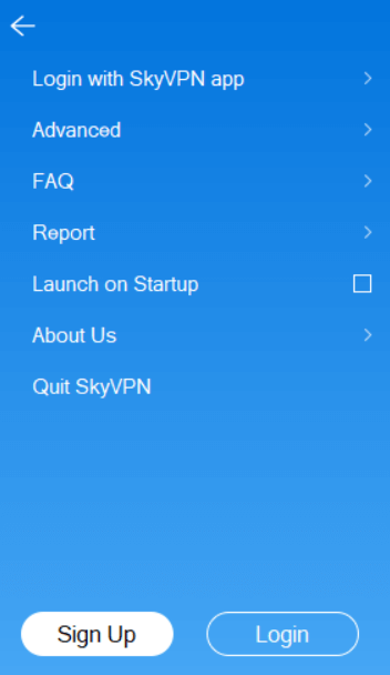 При первом входе, перейдите в раздел меню в верхнем левом углу и войдите в аккаунт с подключённым тарифом. После этого, на главной странице приложения вы можете запустить VPN простым нажатием кнопки.